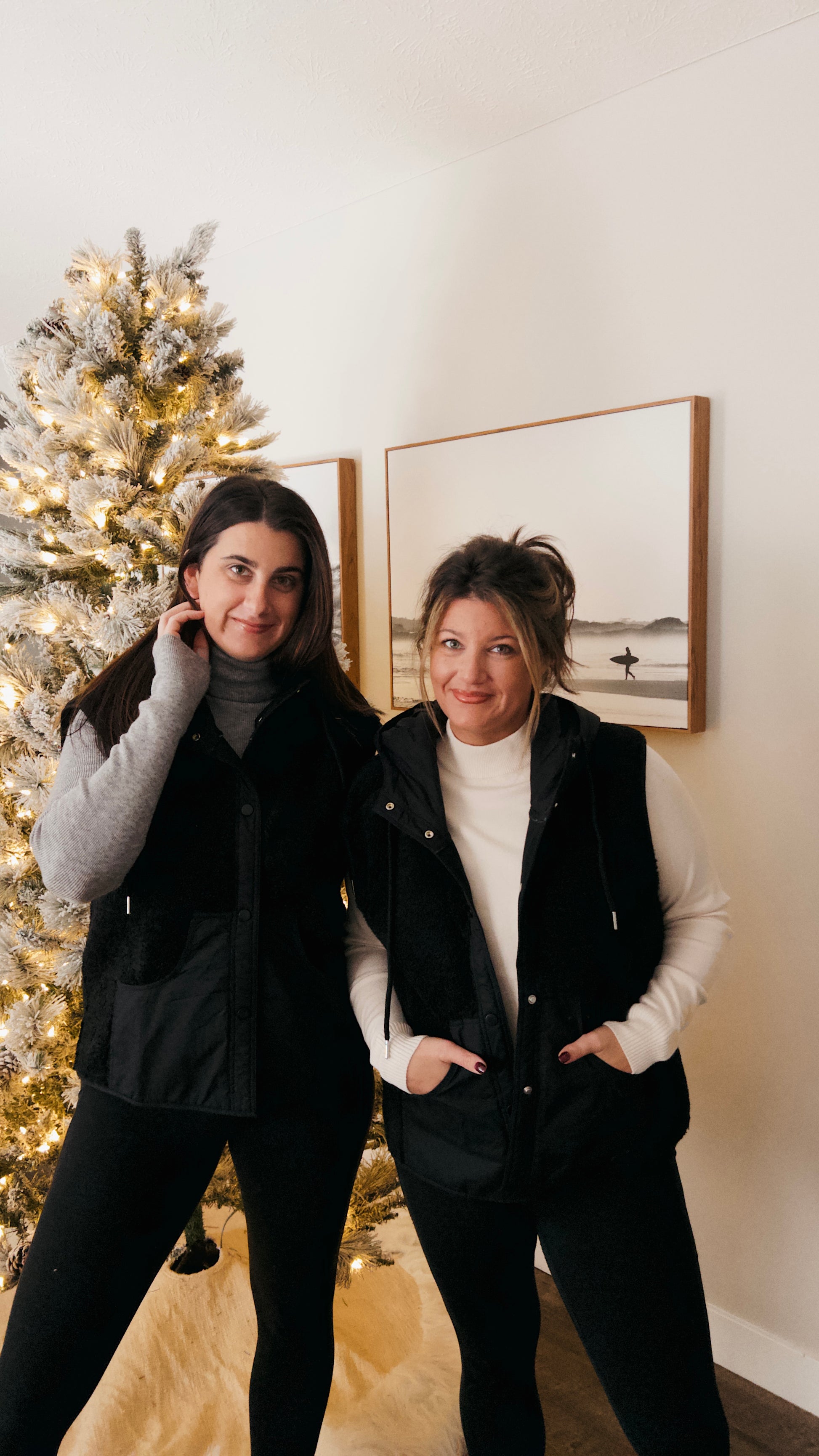 This is a cozy and stylish hooded vest, perfect for adding a layer of warmth and texture to any casual outfit. The vest showcases a contemporary mixed-media design, featuring a plush, textured teddy sherpa fleece on the main body. This is contrasted by smooth, durable fabric panels on the integrated hood, the central snap-button placket, and the large front patch pockets. A standout feature is its luxurious interior, fully lined with soft, faux suede which adds a premium feel and is stylishly revealed when the vest is worn open. Complete with functional drawstrings and prominent silver-tone snap buttons, this vest combines rugged, outdoorsy style with cozy comfort, making it an ideal layering piece. -Model is 5'9" and wearing a Small